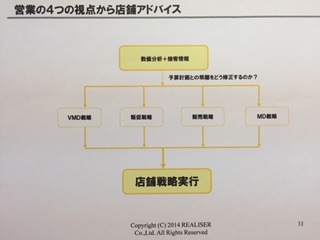 このような成功事例や今後の戦略を共有する事により全体のブランド売上の底上げが可能になるし、もっと奥深いヒアリングが可能となる。また、どの週からコートやジャケットが昨年売れ出したかを館ノウハウとして蓄積する事により、館内のフェアーやブランドフェアーとの連動も可能になる。