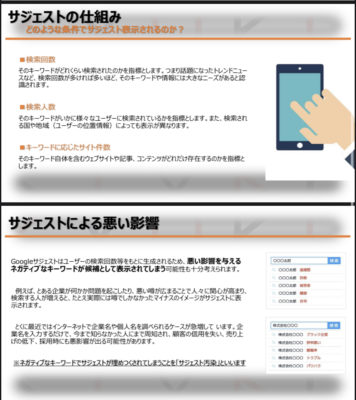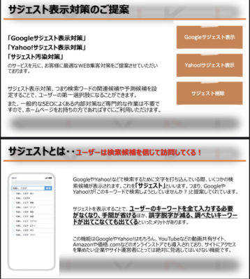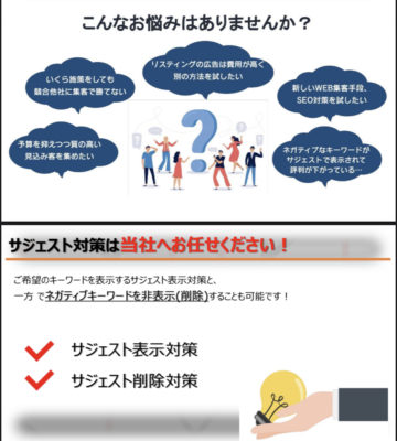 ご興味ありましたら、お問い合わせ項目の「サジェスト表示対策」からメールお願い致します。