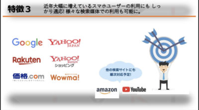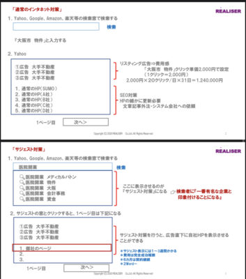 現在、サジェスト表示の営業は積極的に実施しておりませんが、販売開始して1年ですが、口コミで1040社と契約があります。メーカー社長が元々医療のコンサルタントが専門であり、クライアントに使って頂けたらという程度と、言い商品であるならば口コミでも広がっていくという考えのようです。
